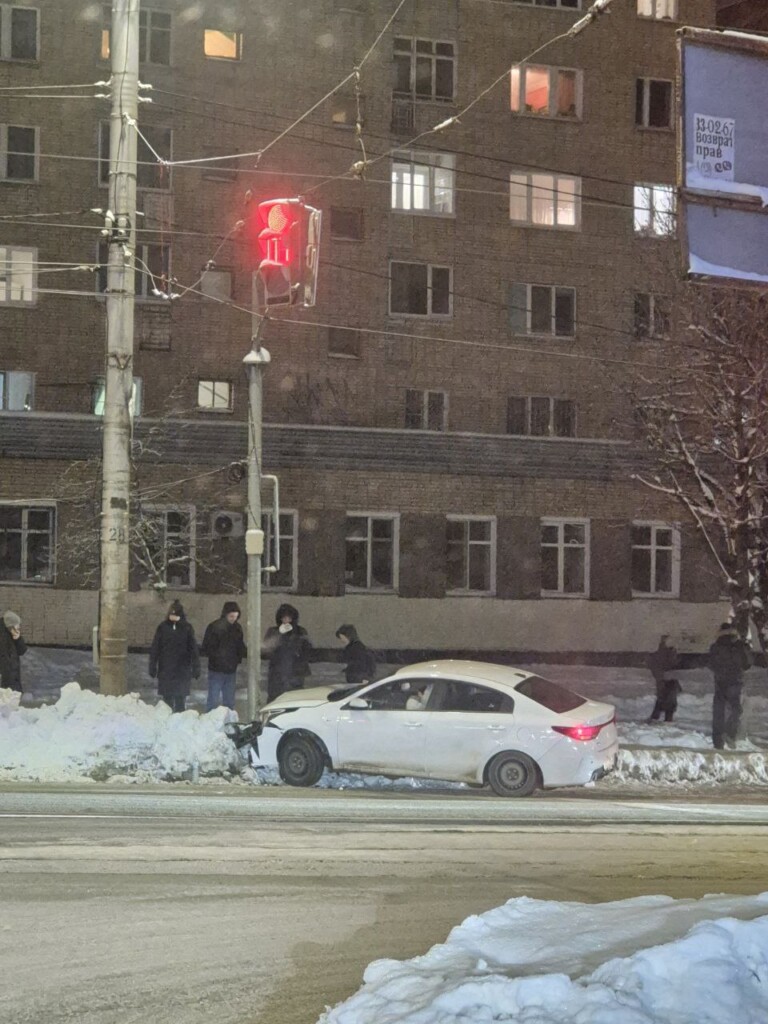 Смоленск, 19 января. В Смоленске автомобиль марки «Киа Рио» врезался в столб светофора возле ТРЦ «Макси».