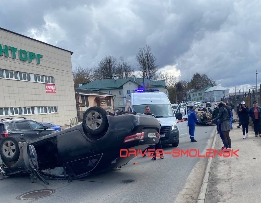 По словам свидетелей, обе машины совершили полное опрокидывание и лежат на крышах. На месте дорожно-транспортного происшествия сейчас работают сотрудники скорой медицинской помощи.