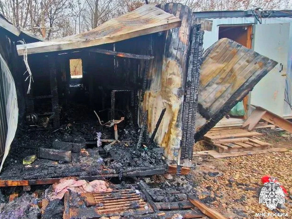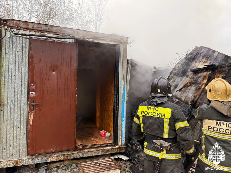 Внутри бытовки никого не было; рабочие оперативно вызвали пожарных и до их приезда пытались сбить пламя огнетушителями.