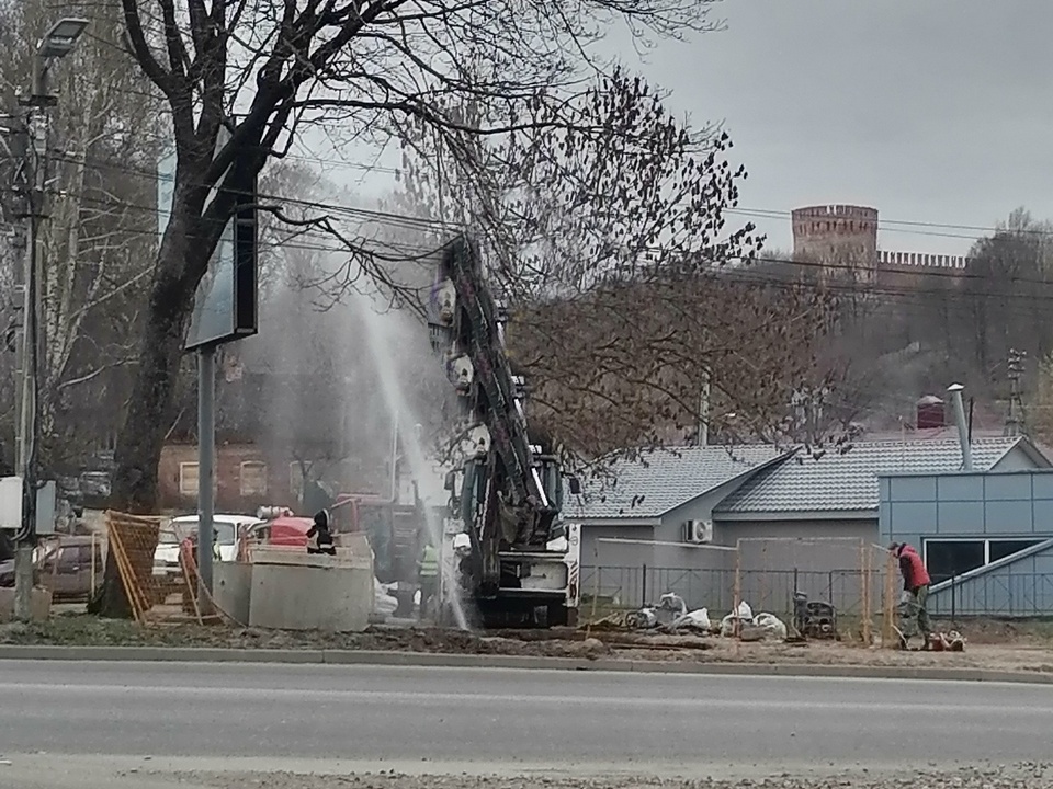 Судя по кадрам с места, порыв случился из коммунального раскопа вблизи автомобильной дороге и у поворотного кольца, ведущего, в том числе, на Крестовоздвиженский мост.