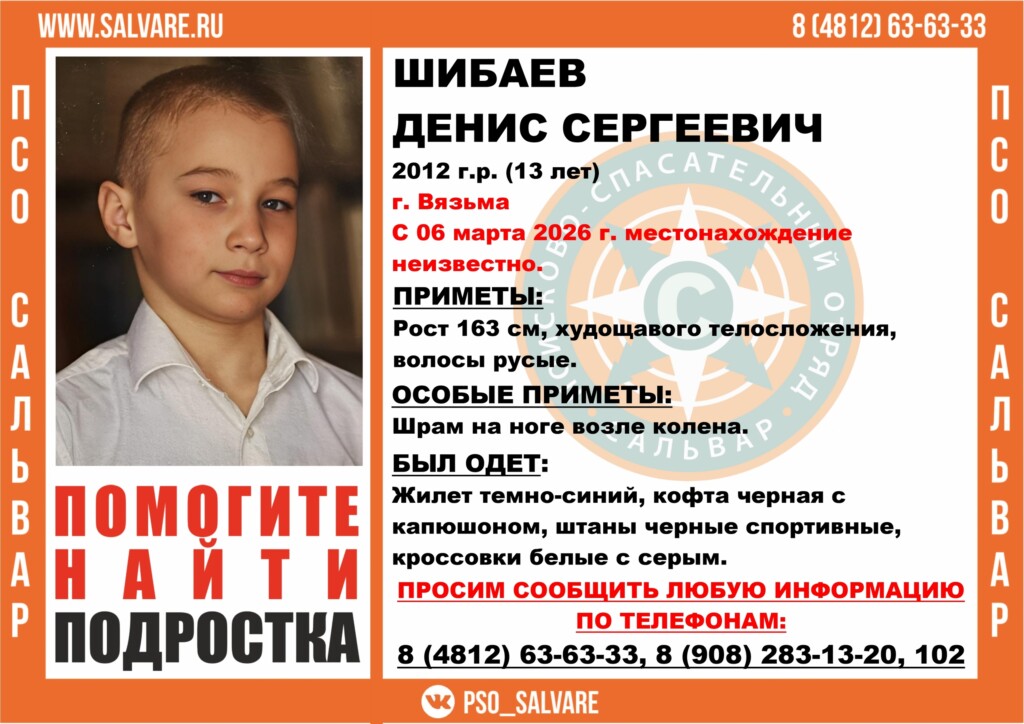 Смоленск, 7 марта. Денис Шибаев 2012 года рождения пропал в Вязьме.