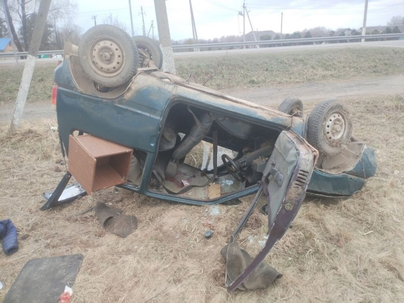 Смоленск, 1 апреля. Отечественная легковушка опрокинулась на проезжей части после столкновения с иномаркой на трассе Р-120 в Смоленской области.