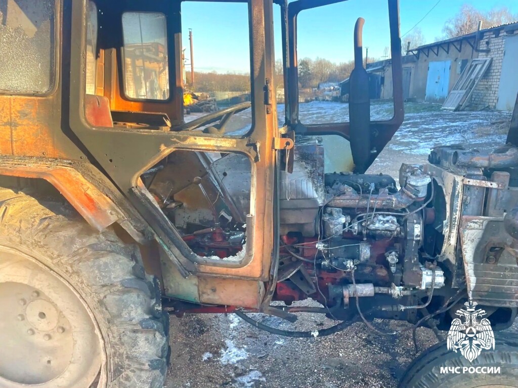 Инцидент произошёл вчера, 24 декабря: в гараже загорелся трактор, когда владелец повернул ключ зажигания.