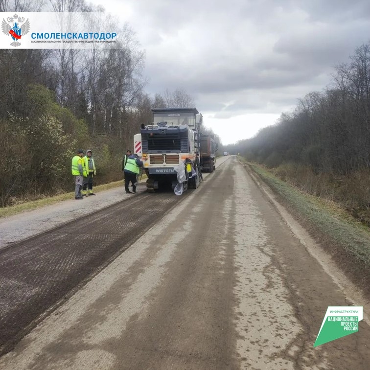 «Приступили к ремонту автомобильной дороги общего пользования регионального и межмуниципального значения «Витязи-Духовщина-Белый-Нелидово на участке км 56+720 – км 61+000»», — уточнили в организации.