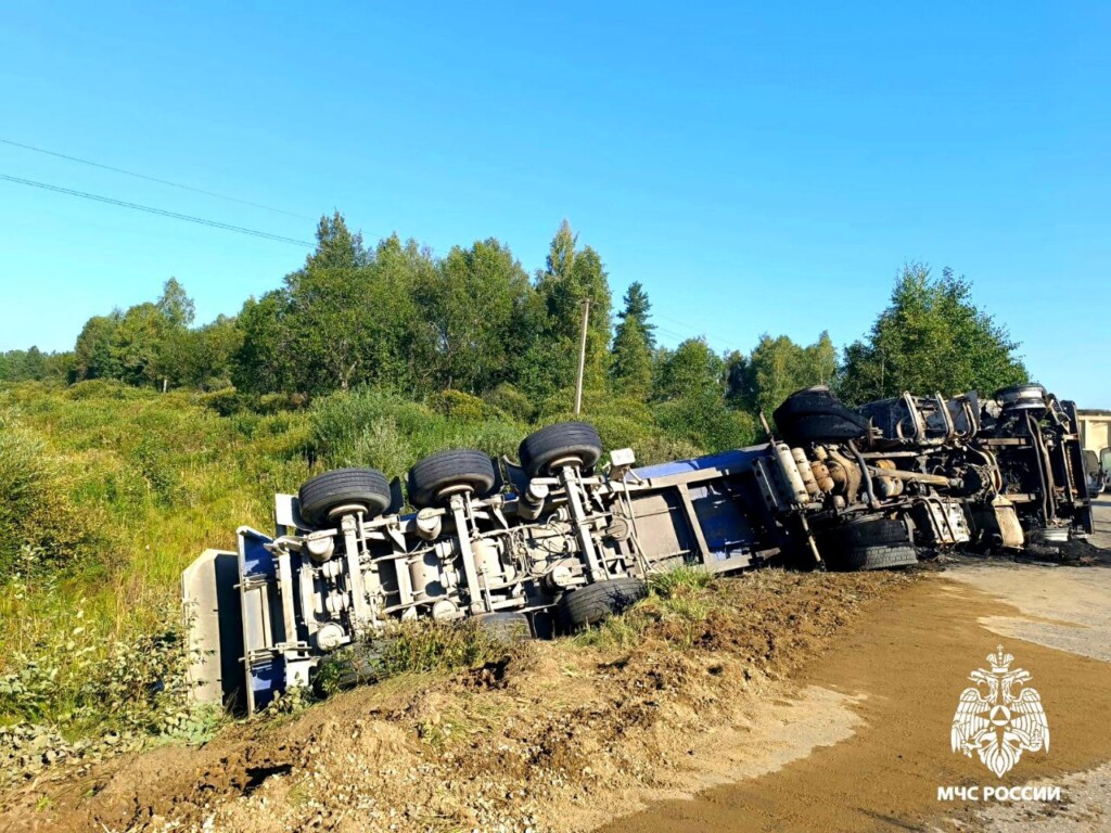 Смоленск, 9 сентября. Причиной вызова спасателей МЧС в Новодугинский округ Смоленской области сегодня стал автопожар — большегруз загорелся после опрокидывания в кювет.