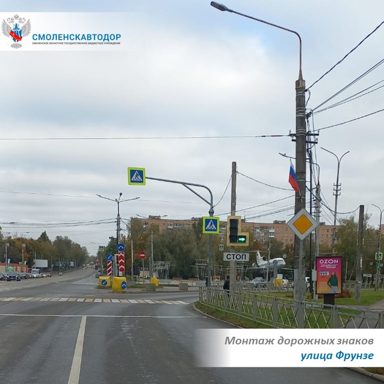 Смоленск, 4 октября. На улице Фрунзе в Смоленске произвели монтаж новых дорожных знаков.