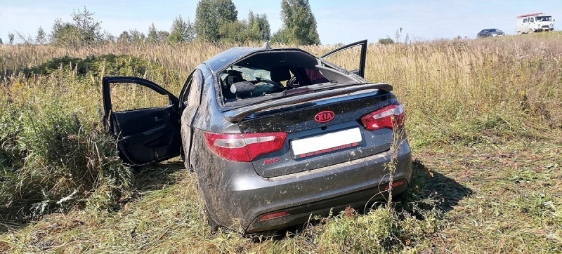 В попытке уйти от столкновения с УАЗиком водитель «Киа Рио» не справился с управлением, машина вылетела в кювет и опрокинулась.