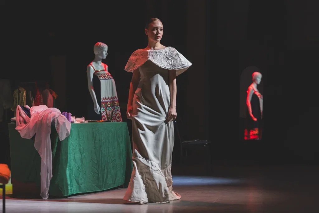 Постановка, режиссёром которой выступил Алексей Фроленков (Театр на Малой Бронной, Москва), погрузила зрителей в атмосферу эволюции российской моды — от авангардных 1920-х до современных 2020-х годов. Вместе с тремя главными героями — модельером, его ассистенткой Зоей и ожившим манекеном по имени Модеста — гости вечера искали ответ на вопрос, как исторические события формировали стиль и что значило быть элегантным в разные эпохи. Театральные сцены органично сменялись выходами моделей, демонстрирующих наряды, отражающие дух каждого двадцатилетия. Роль моделей примерили на себя школьники Десногорска, для которых этот выход стал дебютом в мире профессиональной моды.