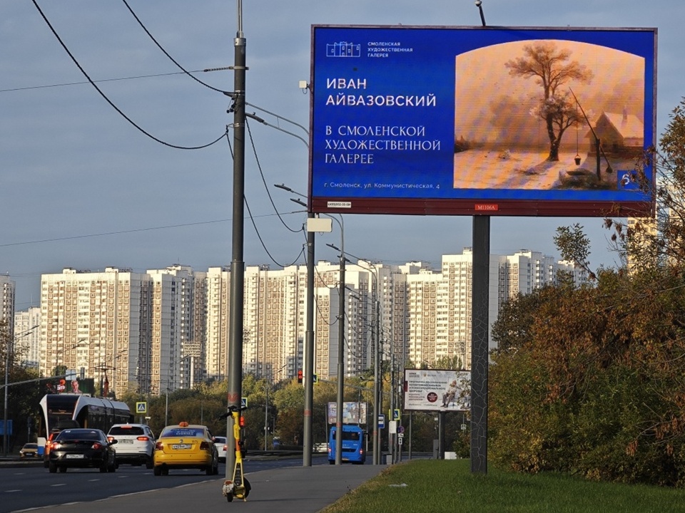 В частности, в прошлом месяце на оживлённых московских магистралях уже размещены 50 щитов с экспонатами смоленской художественной галереи и музея Сергея Конёнкова.