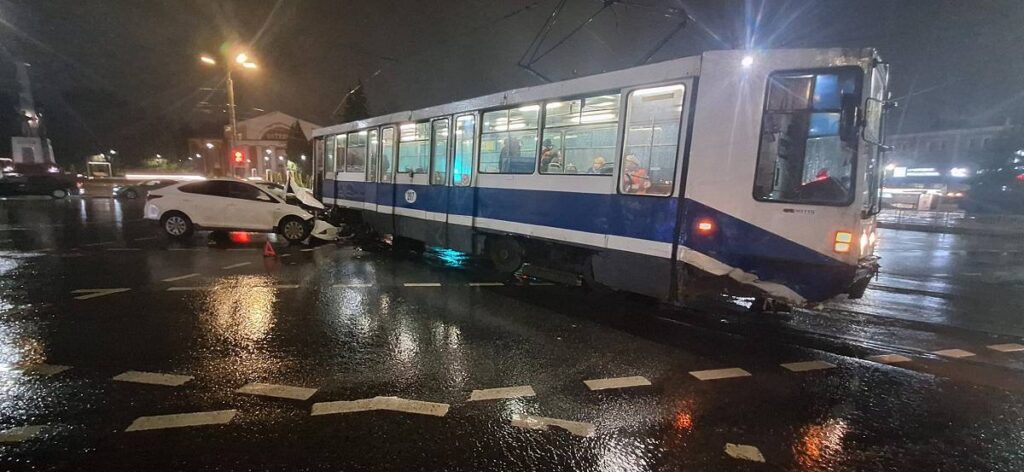 Есть пострадавшая. В Смоленске легковушка «протаранила» трамвай на площади Победы