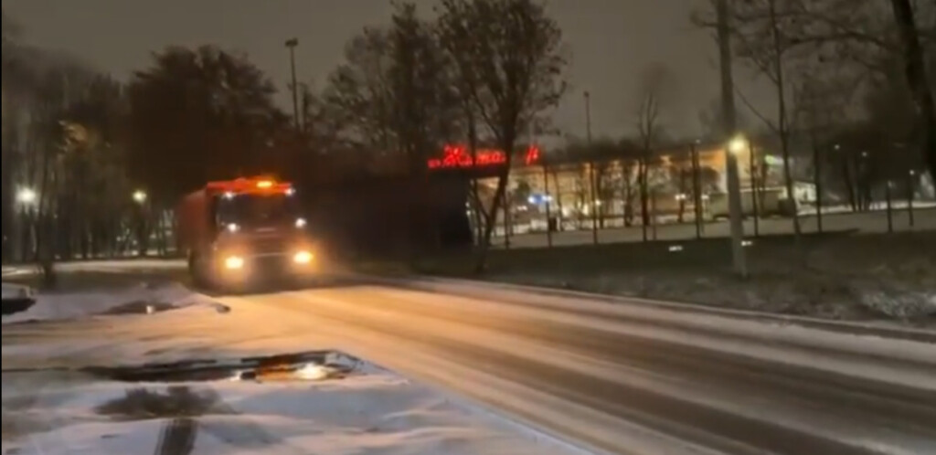 Отмечается, что минувшей ночью после снегопада дороги обработали противогололедными материалами.