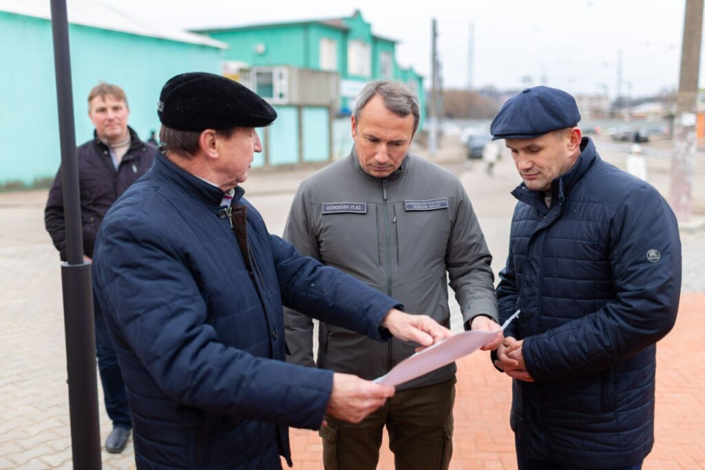Первой точкой визита Петра Илюхина и Юрия Зырянова стал Заднепровский рынок в Смоленске. Здесь специалисты планомерно приводят в порядок не только торговые ряды, но и прилегающую Колхозную площадь, в частности демонтируя устаревшие павильоны. В планах — строительство торговой галереи и формирование единого архитектурного стиля.