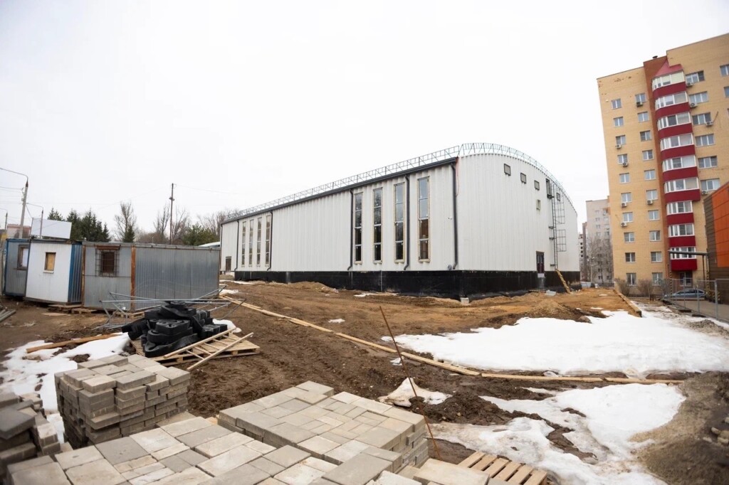 Внутри здания уже возведены перегородки, идёт отделка стен. Со следующей недели начнётся монтаж последнего крыльца и благоустройство территории. Как только сойдёт снег, подрядчик займётся наружным освещением.