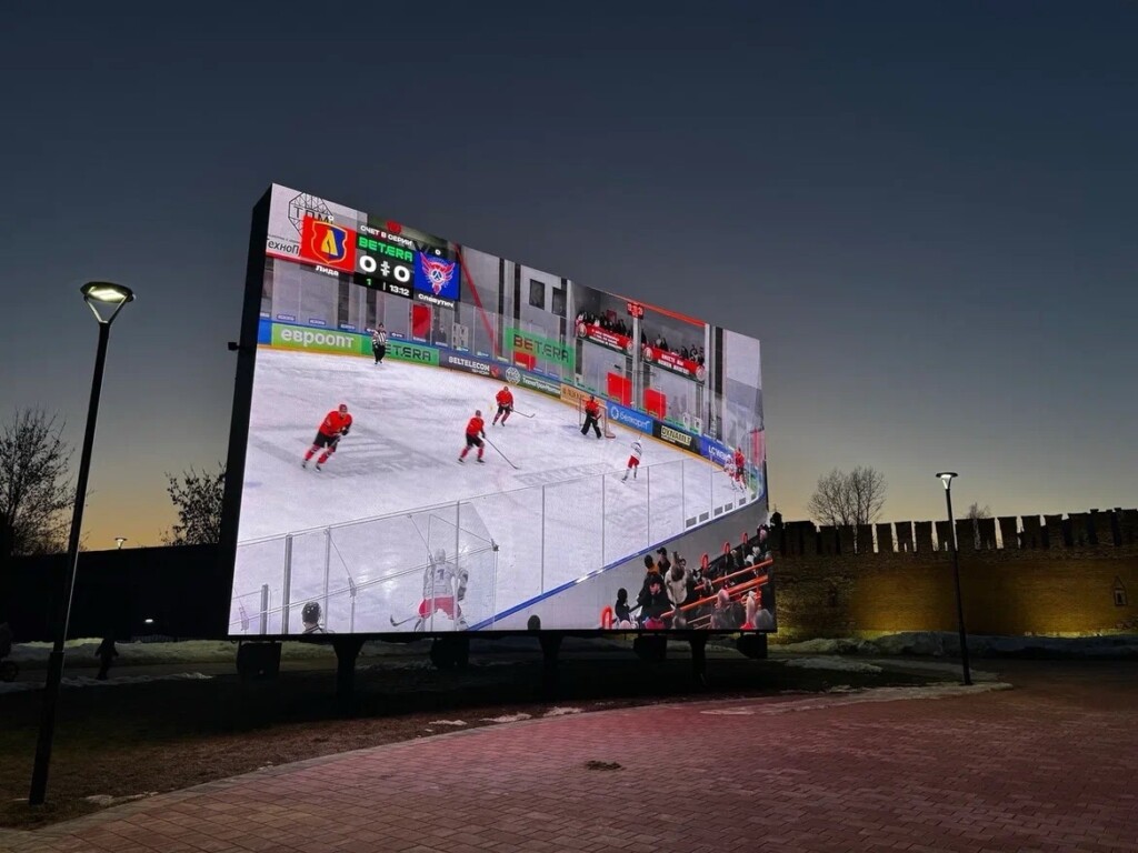 Поклонники ХК «Славутич» собрались у большого экрана под открытым небом, чтобы поболеть за любимую команду