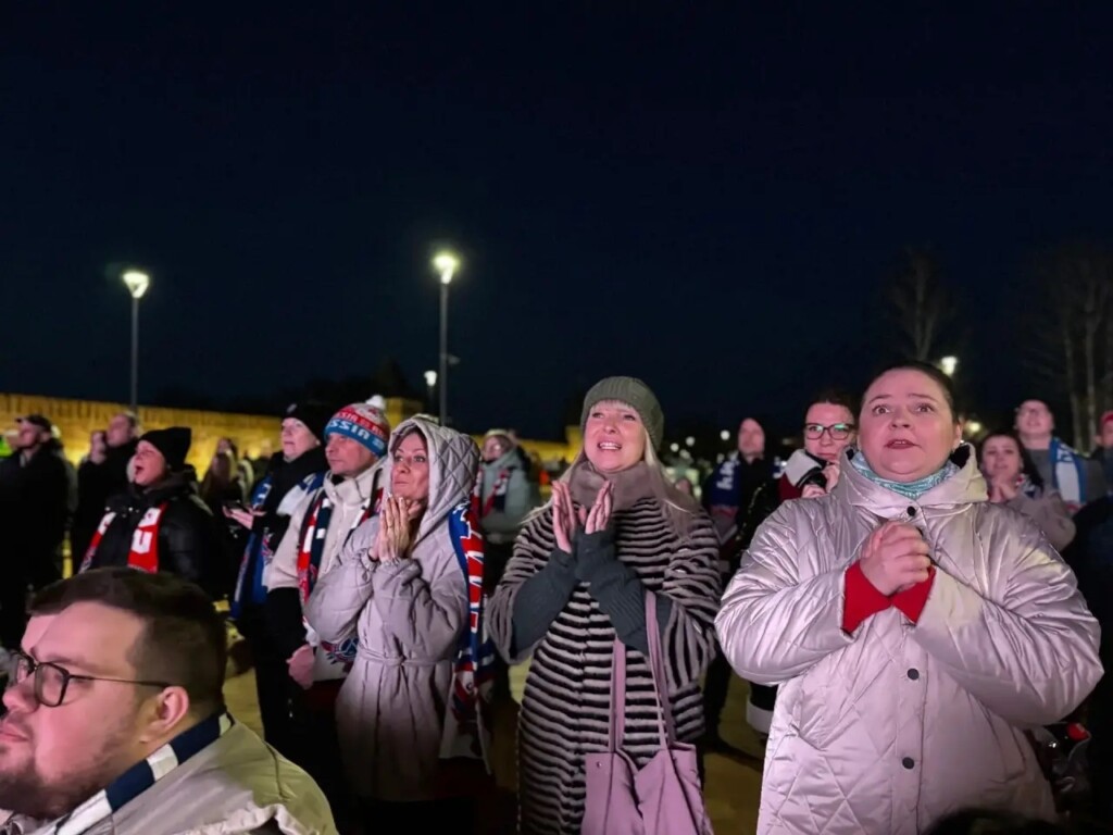 К слову, за ХК «Славутич» болели не только на трибунах. Десятки поклонников команды собрались у большого экрана под открытым небом в сквере имени М.Б. Шеина в Смоленске.