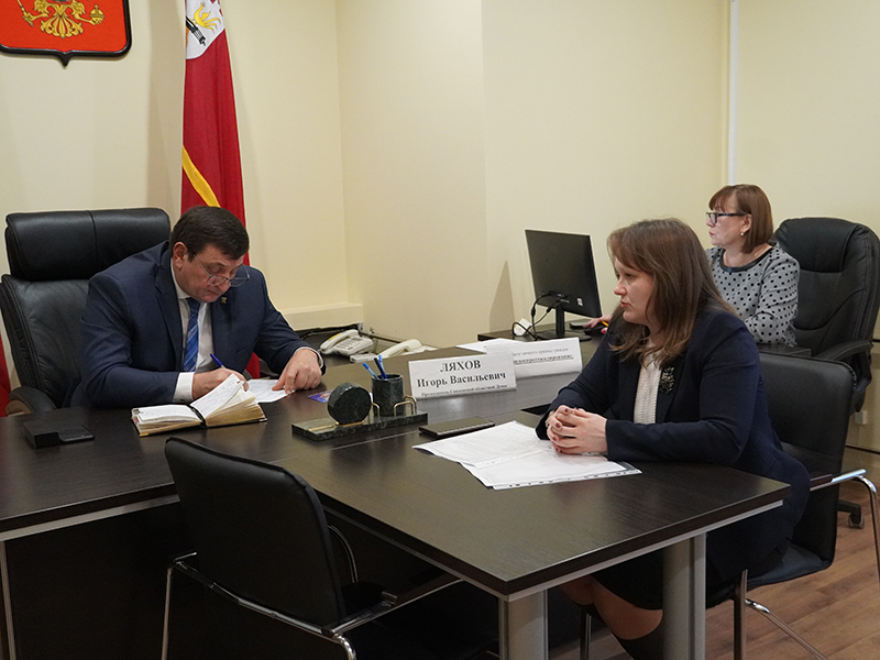 Накануне пресс-конференции, посвящённой предстоящим всероссийским соревнованиям по каратэ, председатель Смоленской областной Думы Игорь Ляхов провёл личный приём граждан, на котором к нему обратилась Екатерина Павлова.