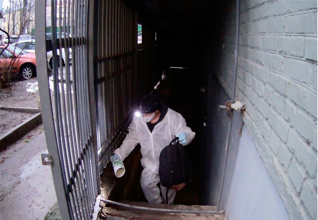 Рабочие провели дезинсекцию, дератизацию и очистку подвальных помещений на улице Твардовского