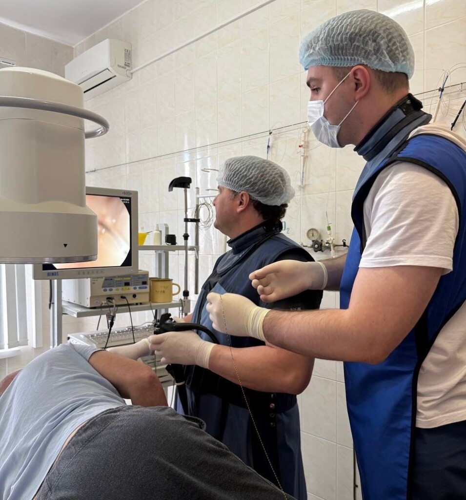 Результат работы врачей был мгновенный: стент раздвинул суженный опухолью участок пищевода, восстановил его проходимость и одновременно перекрыл трахео-пищеводный свищ, ликвидируя заброс содержимого пищевода в бронхи и легкие. Манипуляция проводилась под рентгенологическим и эндоскопическим контролем. Такой комбинированный подход сделал процедуру максимально точной и безопасной», — уточнили в СОКБ.