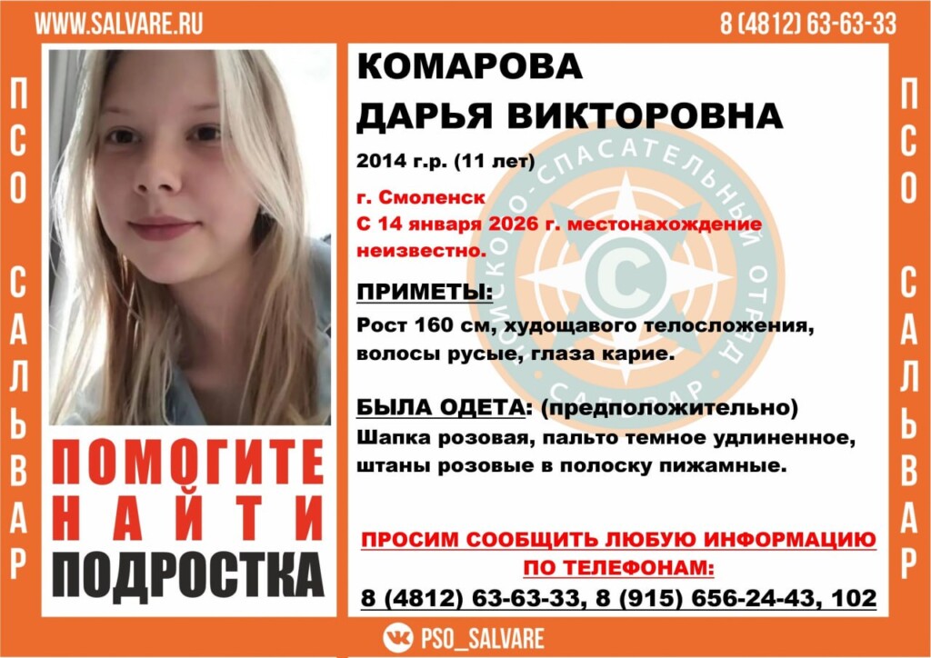 Как сообщает поисково-спасательный отряд «Сальвар», Дарья Комарова не вернулась домой в среду, 14 января. Родные забили тревогу и обратились за помощью к волонтёрам.