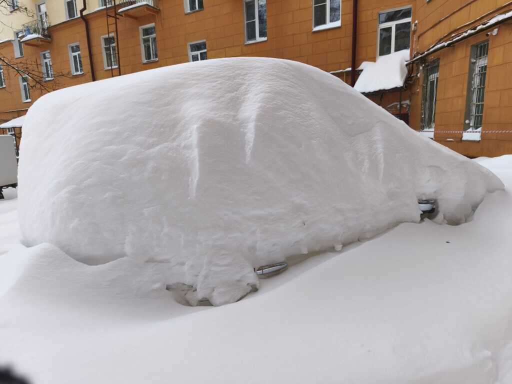 Смоленск, 9 января. Жители Смоленска обнаружили во дворе своего дома сугроб странной формы, внешне очень напоминающий засыпанный снегом внедорожник.