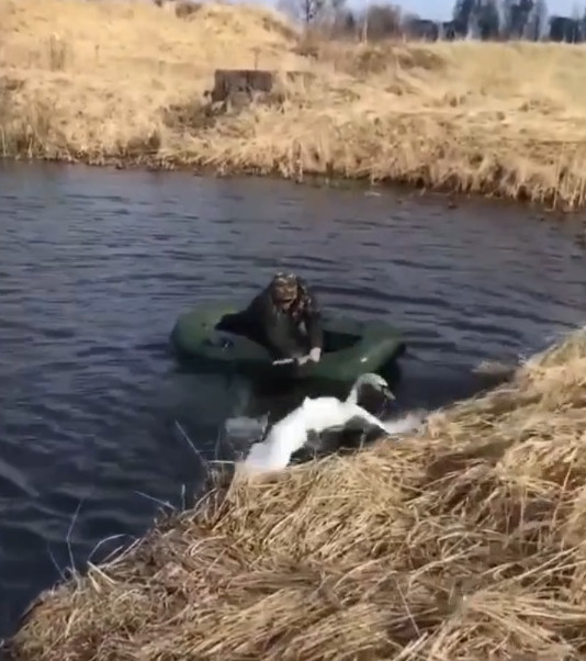 Смоленск, 17 апреля. Специалисты Смолоблохотуправления спасли лебедя, который запутался в рыболовных снастях.