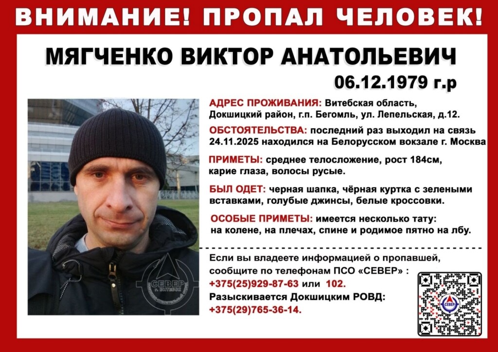 Всех, кто владеет информацией о пропавшем, просят сообщить по телефонам ПСО «СЕВЕР»: +375 25 929-87-63 или 102.