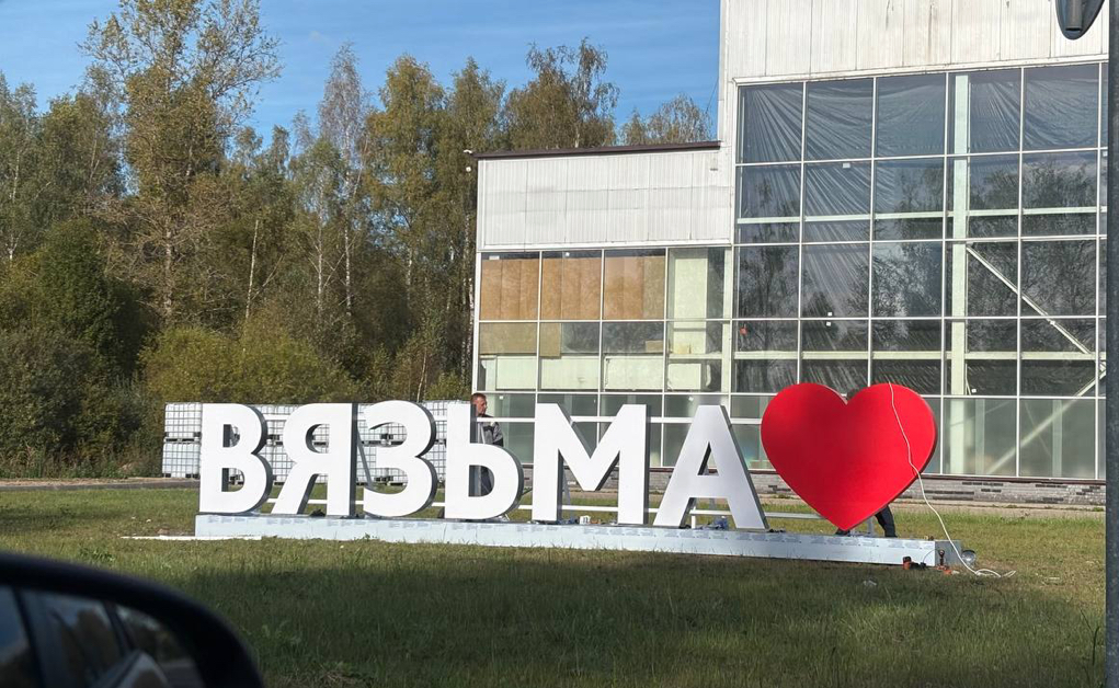 Стела состоит из названия города и сердца. Смоляне отмечают, что в Вязьме стало больше на одну фотозону — первые снимки уже начали заполнять соцсети.
