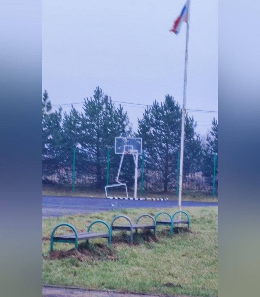 «Ворота торчат разломанные в баскетбольном кольце на площадке», — рассказали смоляне.
