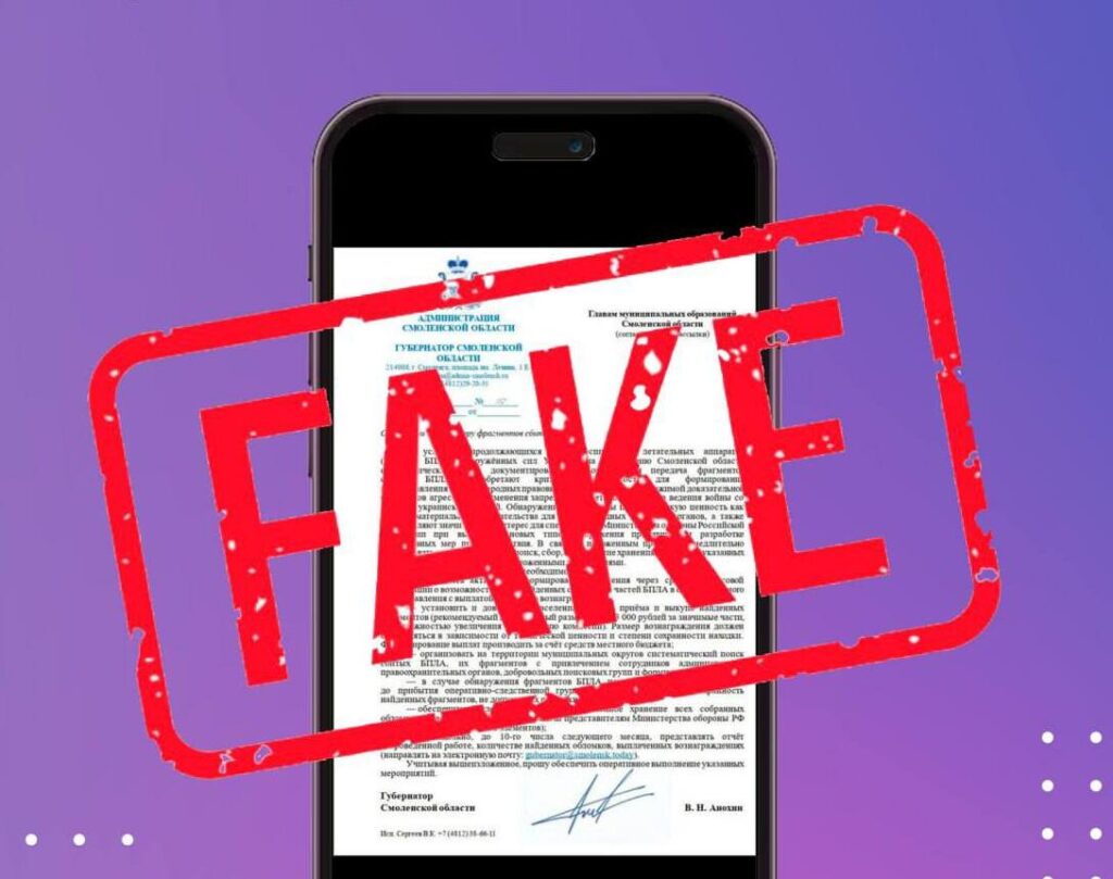 Смоленск, 10 января. В соцсетях начали распространять фейк о выплатах в Смоленской области за сбор обломков БПЛА.